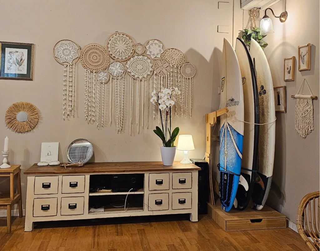- Spirit Rack from Living in Sunshine: Available in three-board and four-board configurations, it’s a great option. This freestanding rack takes just five minutes to assemble and doesn’t require tools or screws.